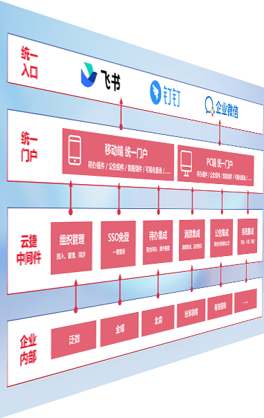 对协作平台提供支持服务,,支持企业应用与协作平台对接,,包含组织同步、、消息集成、、、、待办集成等。。。支持目前主流的协作平台:钉钉、、企微和飞书。。